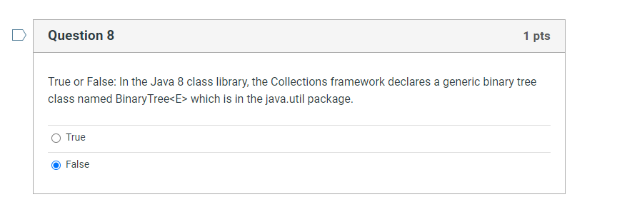 Solved D Question 8 1 Pts True Or False In The Java 8 Class Chegg Com